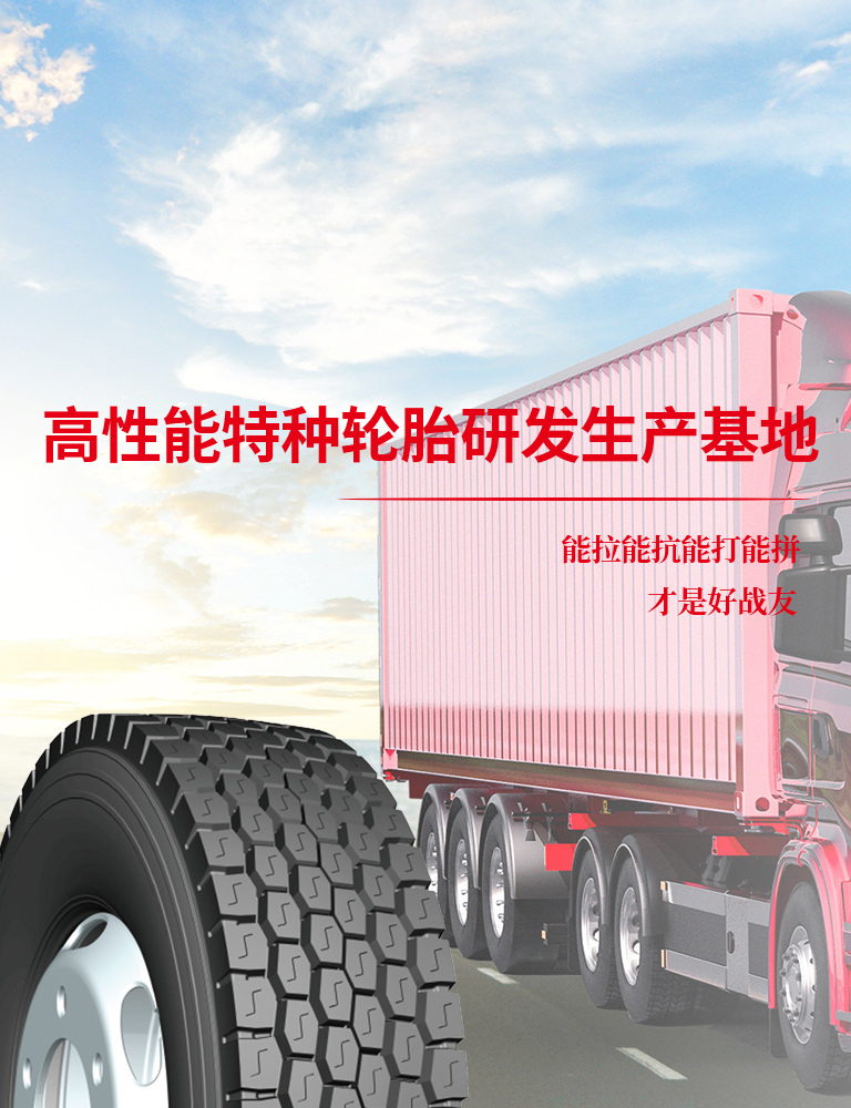 1、優異的胎面花紋溝設計與采用特殊胎面配方設計,具有良好的驅動性能與優良的抗撕裂、崩花掉塊性能,可滿足良好路面與混合路面各路況使用。